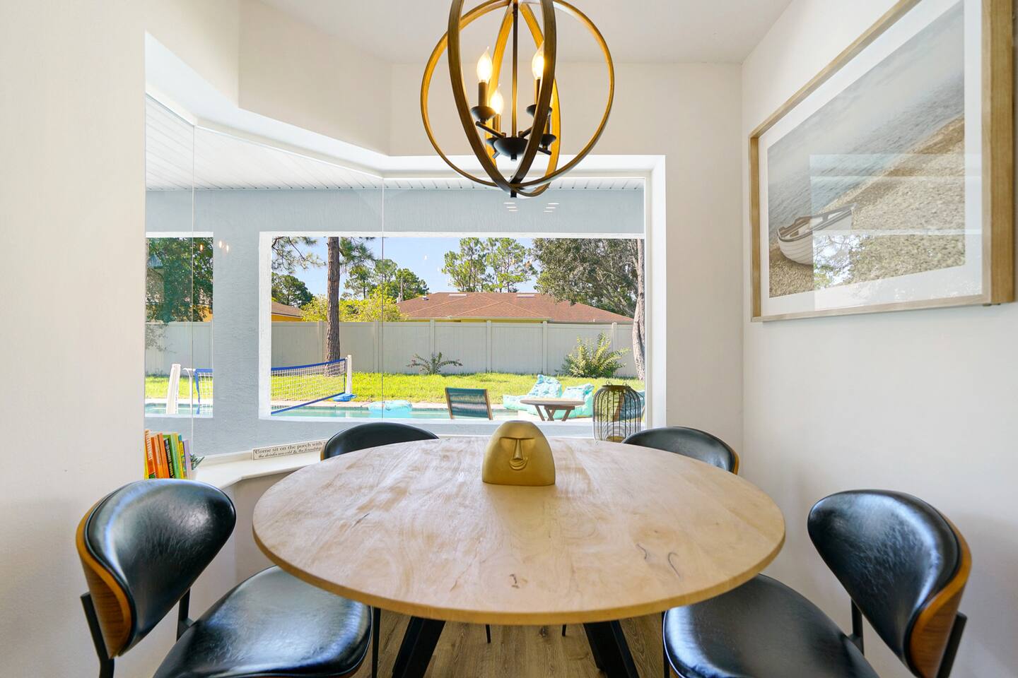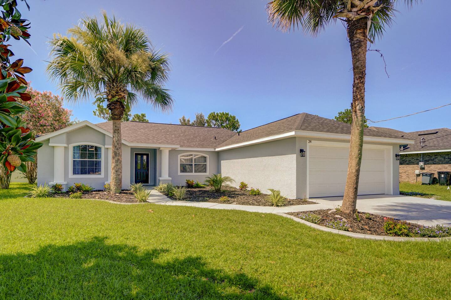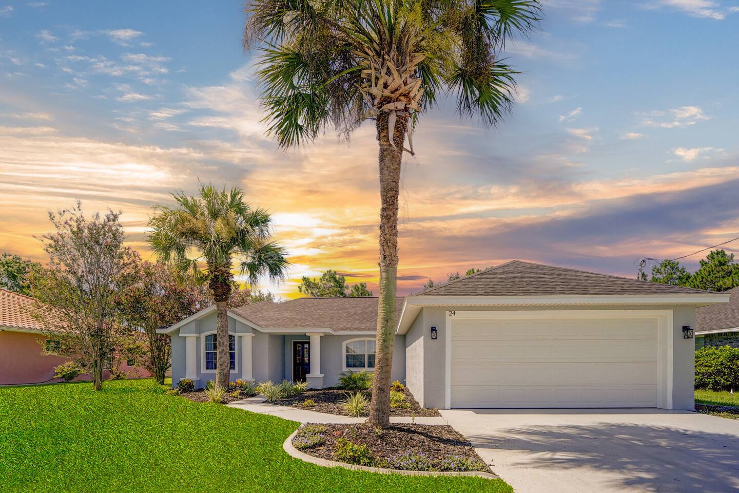 Prime Location: Close to Attractions: Just 10 minutes to the beach, a short drive to St. Augustine and Daytona, and only 1 hour from the magic of Orlando. Quiet Neighborhood: Enjoy peace and tranquility during your stay with full privacy (fully fenced back yard). Entertainment & Relaxation: Multiple TVs: Enjoy your favorite shows in any room. High-Speed Wi-Fi: Stay connected with ease Dedicated work space with a desk. Thoughtfully Curated Decor: Enhances the serene ambiance of the home. What to do in the area? Experience the best of Palm Coast from our ideally located property, just moments away from the gorgeous Flagler Beach. Enjoy endless days on the sandy shores or explore the tranquil Varn Park for a quieter beach experience. For golf enthusiasts, Palm Harbor Golf Club offers a scenic course, while the upscale Hammock Dunes Club provides a premier golfing experience with stunning views. For nature lovers, Palm Coast boasts an array of beautiful parks and trails. Washington Oaks Gardens State Park is a must-visit, with its beautifully landscaped gardens, coquina rock formations, and scenic walking trails. Princess Place Preserve is perfect for those seeking outdoor adventures, featuring trails for hiking, areas for kayaking, and opportunities to spot local wildlife. The Belle Terre Park and the Graham Swamp Preserve offer additional trails for walking and biking, providing a chance to connect with nature and enjoy the area's lush landscapes. Shopping enthusiasts will appreciate the diverse options available. The Palm Coast Town Center is a popular destination with a variety of stores, dining options, and entertainment. European Village offers a charming atmosphere with unique boutiques, delightful cafes, and a range of restaurants perfect for a leisurely day out. For a more extensive shopping experience, you can visit the nearby Ormond Beach and Daytona Beach areas, which offer large shopping centers and retail outlets. Explore the rich history and culture of nearby St. Augustine (25 min), the oldest city in the United States. Highlights include the Castillo de San Marcos, a historic fort with stunning views and fascinating exhibits, and the St. Augustine Lighthouse & Maritime Museum. St. George Street, lined with charming shops, restaurants, and historic landmarks, provides a perfect setting for a leisurely stroll. Daytona Beach (30 min), known for its vibrant atmosphere and famous beach, is just a short drive away. Enjoy the Daytona Beach Boardwalk, with its lively attractions, dining options, and the iconic Daytona International Speedway, home to exciting racing events. The Daytona Lagoon offers family-friendly fun with water slides and attractions, making it a great destination for all ages. With so much to explore and enjoy, our property provides the perfect base for discovering the natural beauty and vibrant culture of Palm Coast, St. Augustine, and Daytona Beach. Whether you're seeking relaxation, adventure, or local charm, you'll find it all within reach. Welcome to Serene Coastal Retreat, your perfect getaway in the heart of Palm Coast. This newly renovated oasis offers a tranquil escape with modern amenities and luxurious touches designed to make your stay unforgettable. As you step inside, you'll be greeted by a bright and airy living space adorned with elegant white and gold decor. The open-plan design seamlessly connects the living room, dining area, and chef's kitchen, creating a warm and inviting atmosphere. Relax on the plush sofas in the living room while enjoying your favorite shows on the large flat-screen TV. The fully equipped kitchen, featuring top-of-the-line appliances and ample counter space, is a dream for any cooking enthusiast. The retreat boasts three beautifully appointed bedrooms, each equipped with a TV, blackout curtains, and lush mattresses to ensure a restful night's sleep. The master suite includes a spacious bathroom with a walk-in shower and a generous walk-in closet, providing a luxurious private sanctuary. The two additional bedrooms share a modern bathroom, perfect for families or groups of friends. Step outside to discover the true gem of Serene Coastal Retreat: the expansive backyard. Spend your days lounging by the sparkling new pool, soaking up the Florida sun on the comfortable deck chairs. In the evenings, gather around the firepit area with a glass of wine and enjoy the serene ambiance of the beautifully landscaped yard. For those who love to grill, the Webber grill is ready for your BBQ feasts. Nestled in a quiet neighborhood, Serene Coastal Retreat offers the perfect balance of seclusion and convenience. You’re just a short drive from the stunning beaches of Palm Coast, where you can spend your days swimming, sunbathing, or exploring the coastline. The historic charm of St. Augustine and the vibrant energy of Daytona Beach are both within easy reach, offering a variety of shopping, dining, and entertainment options. For nature lovers, the nearby parks and preserves provide ample opportunities for hiking, biking, and wildlife watching. Whether you’re paddling through pristine waterways, fishing off the pier, or simply enjoying a peaceful walk, the natural beauty of Palm Coast is always at your doorstep. A stay at Serene Coastal Retreat promises relaxation, adventure, and unforgettable memories. Whether you’re looking to unwind by the pool, explore local attractions, or simply enjoy the comforts of a luxurious home away from home, this retreat offers it all. We look forward to hosting you and making your stay truly special.