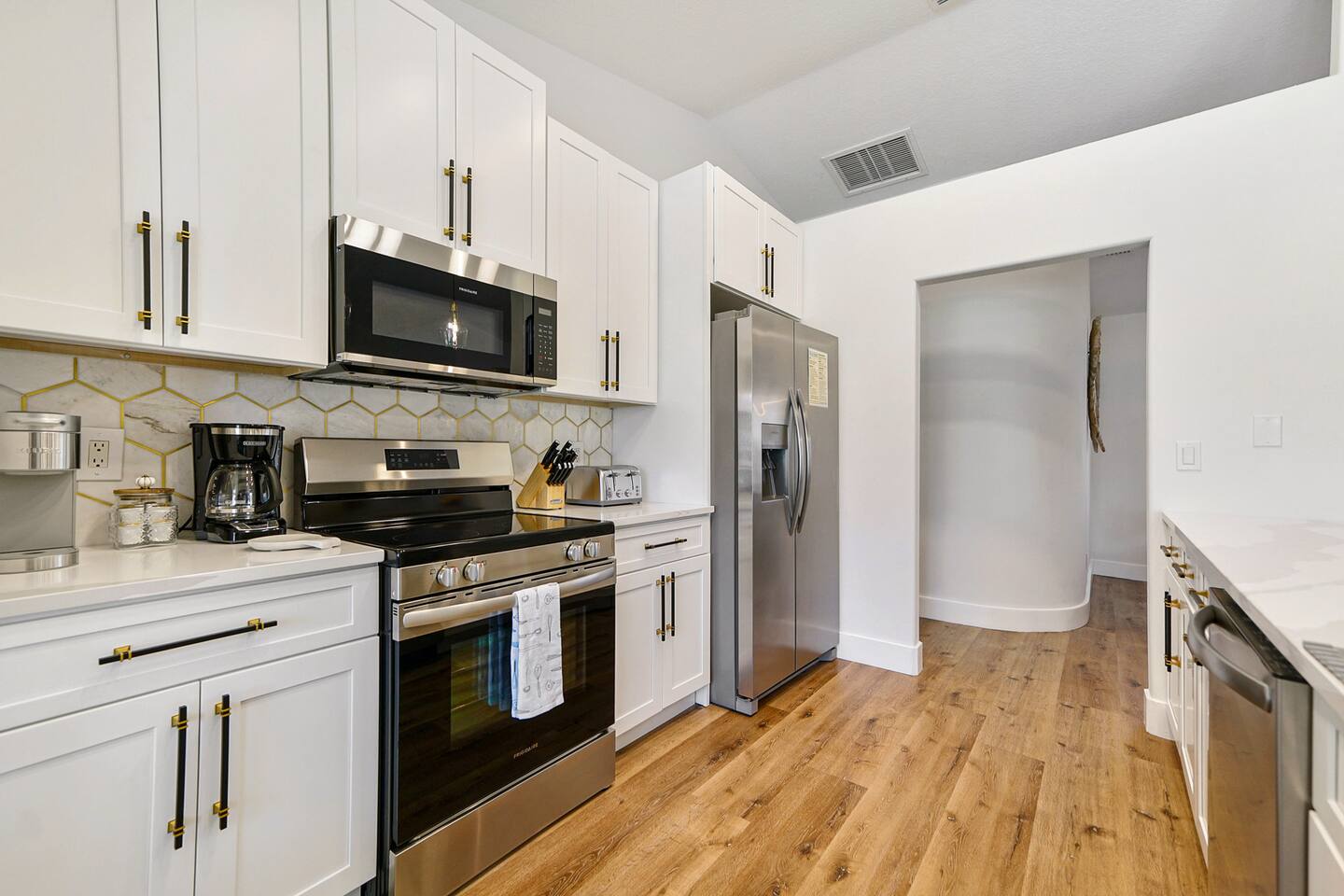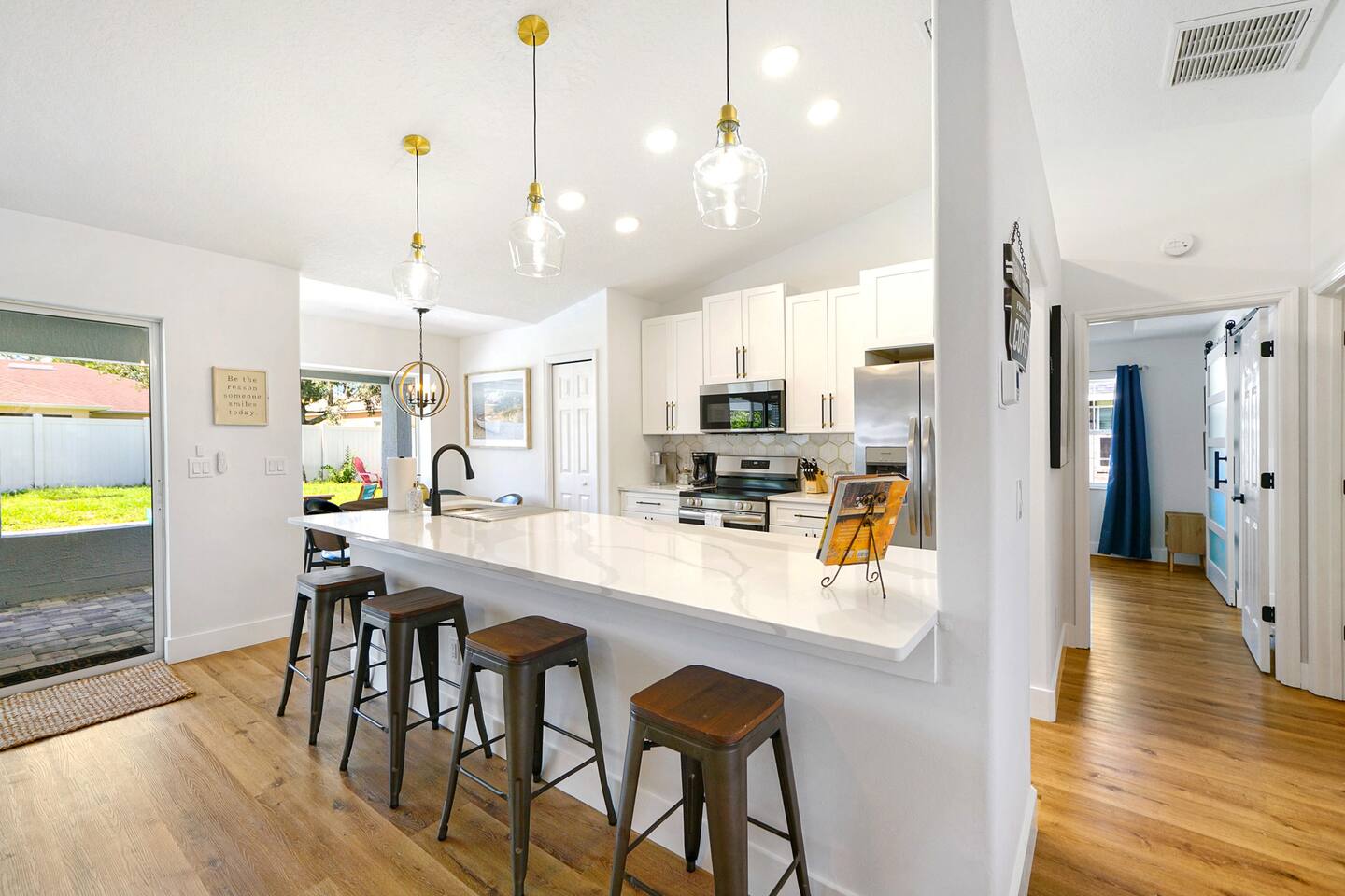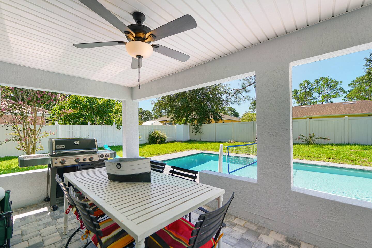 Prime Location: Close to Attractions: Just 10 minutes to the beach, a short drive to St. Augustine and Daytona, and only 1 hour from the magic of Orlando. Quiet Neighborhood: Enjoy peace and tranquility during your stay with full privacy (fully fenced back yard). Entertainment & Relaxation: Multiple TVs: Enjoy your favorite shows in any room. High-Speed Wi-Fi: Stay connected with ease Dedicated work space with a desk. Thoughtfully Curated Decor: Enhances the serene ambiance of the home. What to do in the area? Experience the best of Palm Coast from our ideally located property, just moments away from the gorgeous Flagler Beach. Enjoy endless days on the sandy shores or explore the tranquil Varn Park for a quieter beach experience. For golf enthusiasts, Palm Harbor Golf Club offers a scenic course, while the upscale Hammock Dunes Club provides a premier golfing experience with stunning views. For nature lovers, Palm Coast boasts an array of beautiful parks and trails. Washington Oaks Gardens State Park is a must-visit, with its beautifully landscaped gardens, coquina rock formations, and scenic walking trails. Princess Place Preserve is perfect for those seeking outdoor adventures, featuring trails for hiking, areas for kayaking, and opportunities to spot local wildlife. The Belle Terre Park and the Graham Swamp Preserve offer additional trails for walking and biking, providing a chance to connect with nature and enjoy the area's lush landscapes. Shopping enthusiasts will appreciate the diverse options available. The Palm Coast Town Center is a popular destination with a variety of stores, dining options, and entertainment. European Village offers a charming atmosphere with unique boutiques, delightful cafes, and a range of restaurants perfect for a leisurely day out. For a more extensive shopping experience, you can visit the nearby Ormond Beach and Daytona Beach areas, which offer large shopping centers and retail outlets. Explore the rich history and culture of nearby St. Augustine (25 min), the oldest city in the United States. Highlights include the Castillo de San Marcos, a historic fort with stunning views and fascinating exhibits, and the St. Augustine Lighthouse & Maritime Museum. St. George Street, lined with charming shops, restaurants, and historic landmarks, provides a perfect setting for a leisurely stroll. Daytona Beach (30 min), known for its vibrant atmosphere and famous beach, is just a short drive away. Enjoy the Daytona Beach Boardwalk, with its lively attractions, dining options, and the iconic Daytona International Speedway, home to exciting racing events. The Daytona Lagoon offers family-friendly fun with water slides and attractions, making it a great destination for all ages. With so much to explore and enjoy, our property provides the perfect base for discovering the natural beauty and vibrant culture of Palm Coast, St. Augustine, and Daytona Beach. Whether you're seeking relaxation, adventure, or local charm, you'll find it all within reach. Welcome to Serene Coastal Retreat, your perfect getaway in the heart of Palm Coast. This newly renovated oasis offers a tranquil escape with modern amenities and luxurious touches designed to make your stay unforgettable. As you step inside, you'll be greeted by a bright and airy living space adorned with elegant white and gold decor. The open-plan design seamlessly connects the living room, dining area, and chef's kitchen, creating a warm and inviting atmosphere. Relax on the plush sofas in the living room while enjoying your favorite shows on the large flat-screen TV. The fully equipped kitchen, featuring top-of-the-line appliances and ample counter space, is a dream for any cooking enthusiast. The retreat boasts three beautifully appointed bedrooms, each equipped with a TV, blackout curtains, and lush mattresses to ensure a restful night's sleep. The master suite includes a spacious bathroom with a walk-in shower and a generous walk-in closet, providing a luxurious private sanctuary. The two additional bedrooms share a modern bathroom, perfect for families or groups of friends. Step outside to discover the true gem of Serene Coastal Retreat: the expansive backyard. Spend your days lounging by the sparkling new pool, soaking up the Florida sun on the comfortable deck chairs. In the evenings, gather around the firepit area with a glass of wine and enjoy the serene ambiance of the beautifully landscaped yard. For those who love to grill, the Webber grill is ready for your BBQ feasts. Nestled in a quiet neighborhood, Serene Coastal Retreat offers the perfect balance of seclusion and convenience. You’re just a short drive from the stunning beaches of Palm Coast, where you can spend your days swimming, sunbathing, or exploring the coastline. The historic charm of St. Augustine and the vibrant energy of Daytona Beach are both within easy reach, offering a variety of shopping, dining, and entertainment options. For nature lovers, the nearby parks and preserves provide ample opportunities for hiking, biking, and wildlife watching. Whether you’re paddling through pristine waterways, fishing off the pier, or simply enjoying a peaceful walk, the natural beauty of Palm Coast is always at your doorstep. A stay at Serene Coastal Retreat promises relaxation, adventure, and unforgettable memories. Whether you’re looking to unwind by the pool, explore local attractions, or simply enjoy the comforts of a luxurious home away from home, this retreat offers it all. We look forward to hosting you and making your stay truly special.