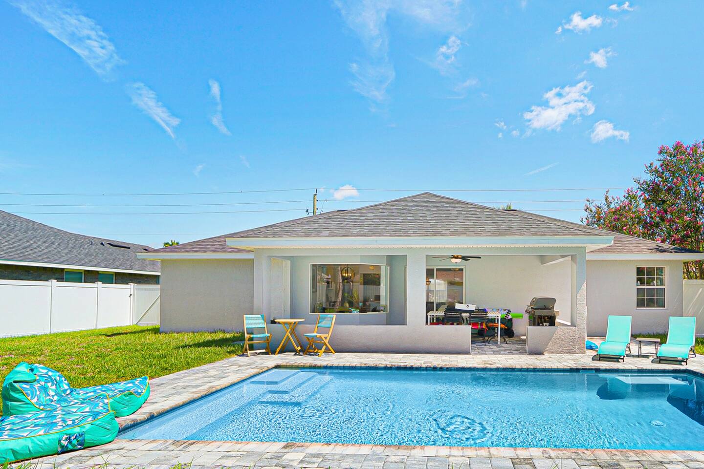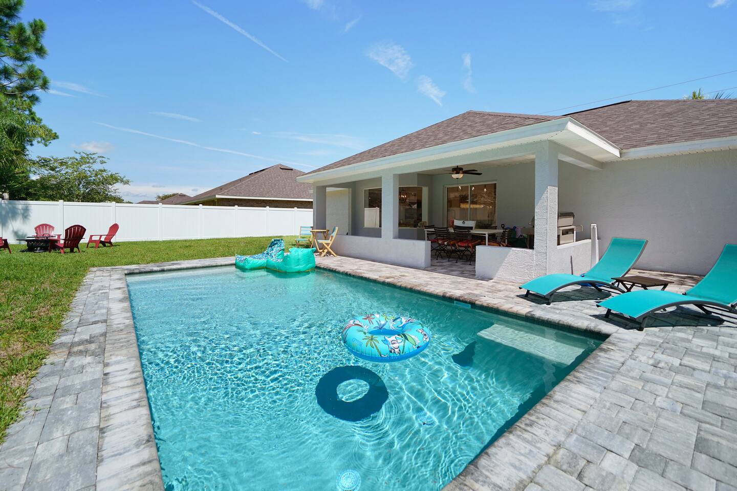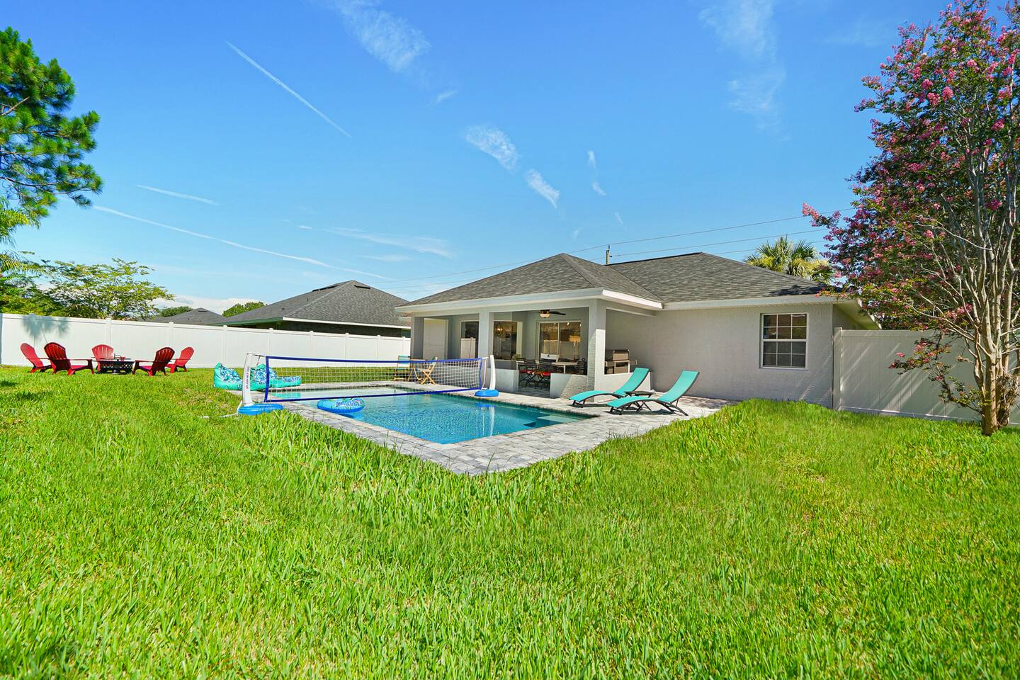 NEW!!! Luxury Coastal Retreat Sleeps 12, with Salt Water new Pool, hottub Fire-pit, Huge Fun Yard, Close to Beach Golf Welcome to Serene Coastal Retreat the ultimate luxury getaway in Palm Coast Florida This newly renovated haven, is designed to offer unparalleled privacy, comfort & style accommodating up to 12 guests Perfect for family reunions, group vacations or a tranquil escape, this home combines modern elegance with thoughtful amenities Kick back and relax in this calm stylish space