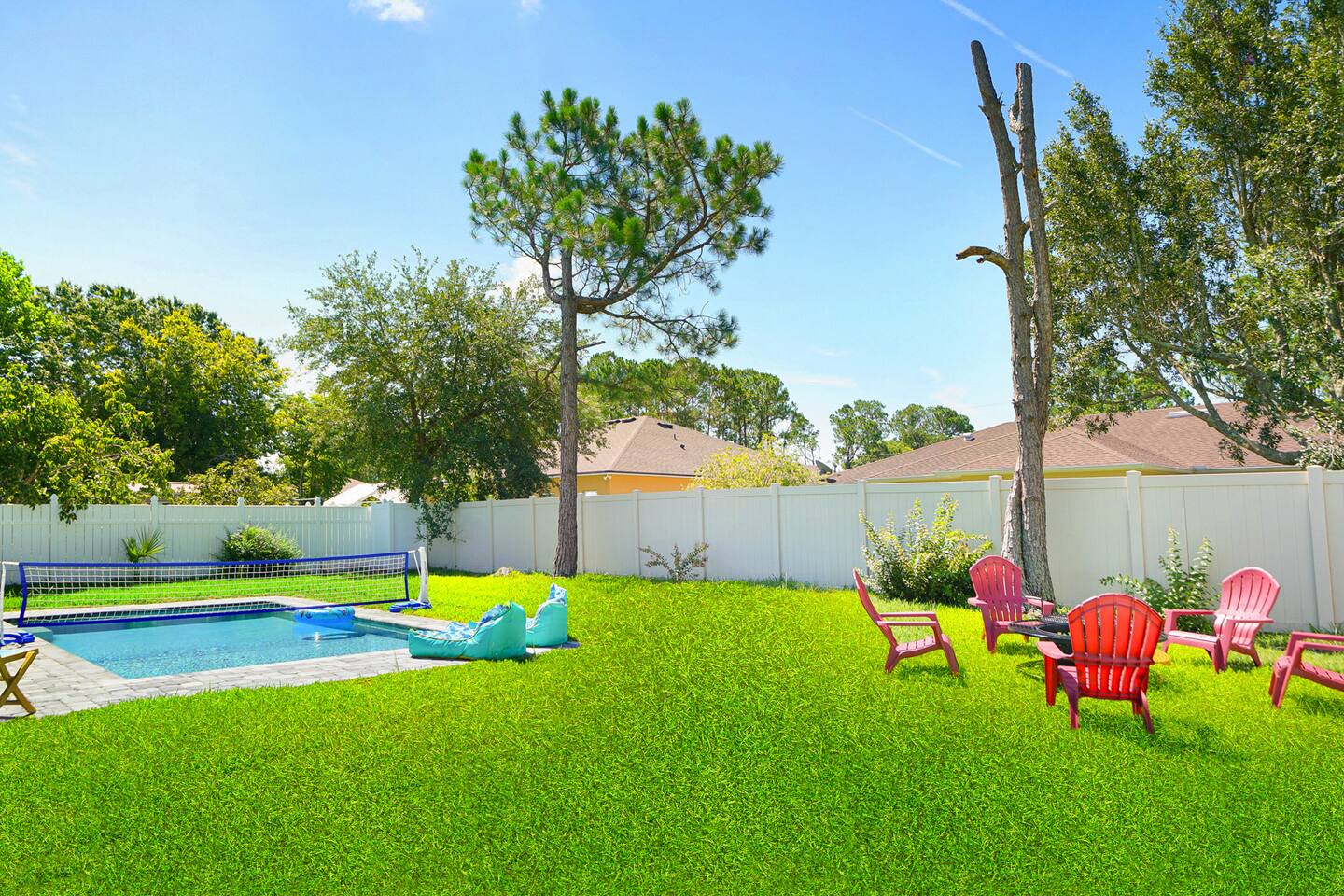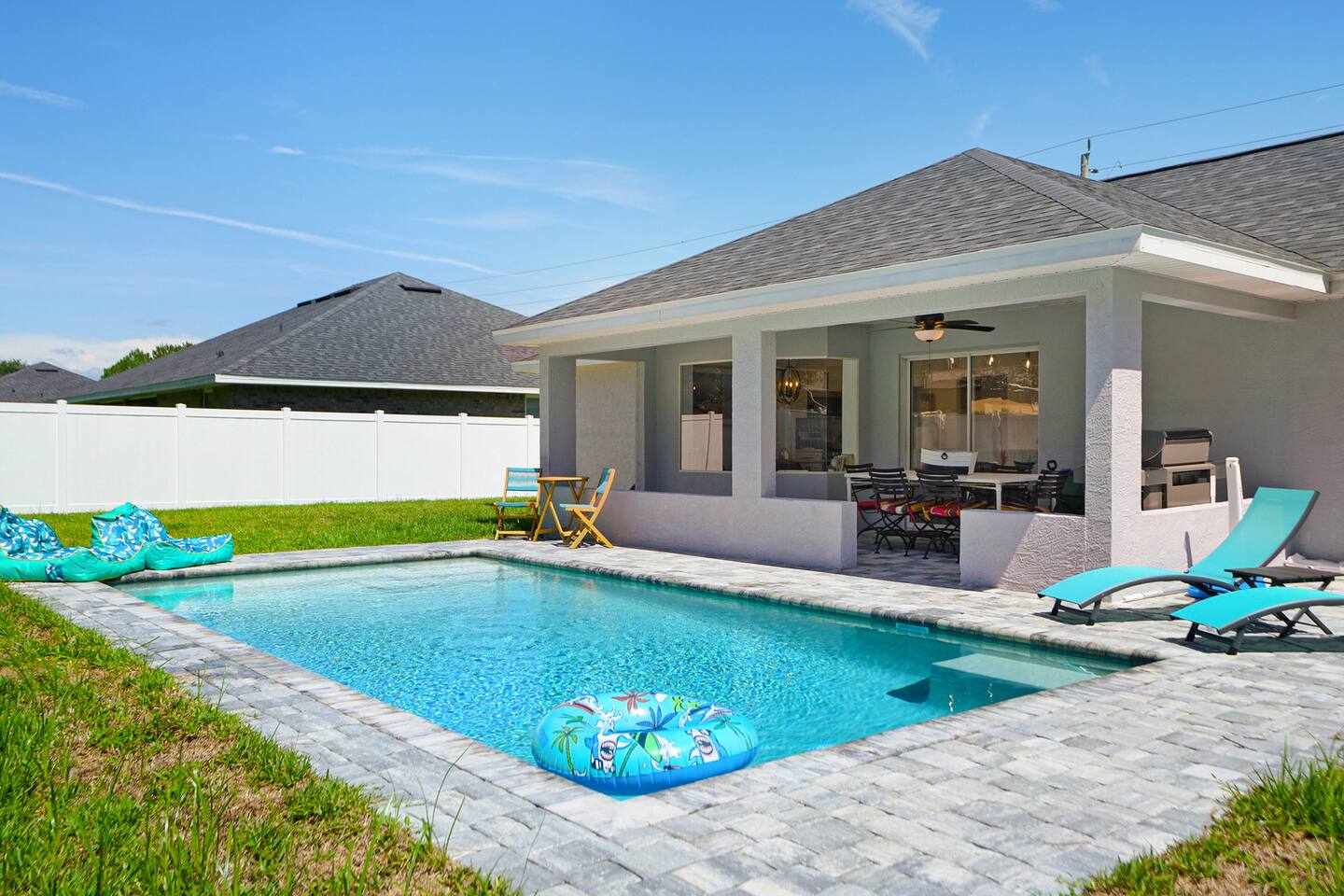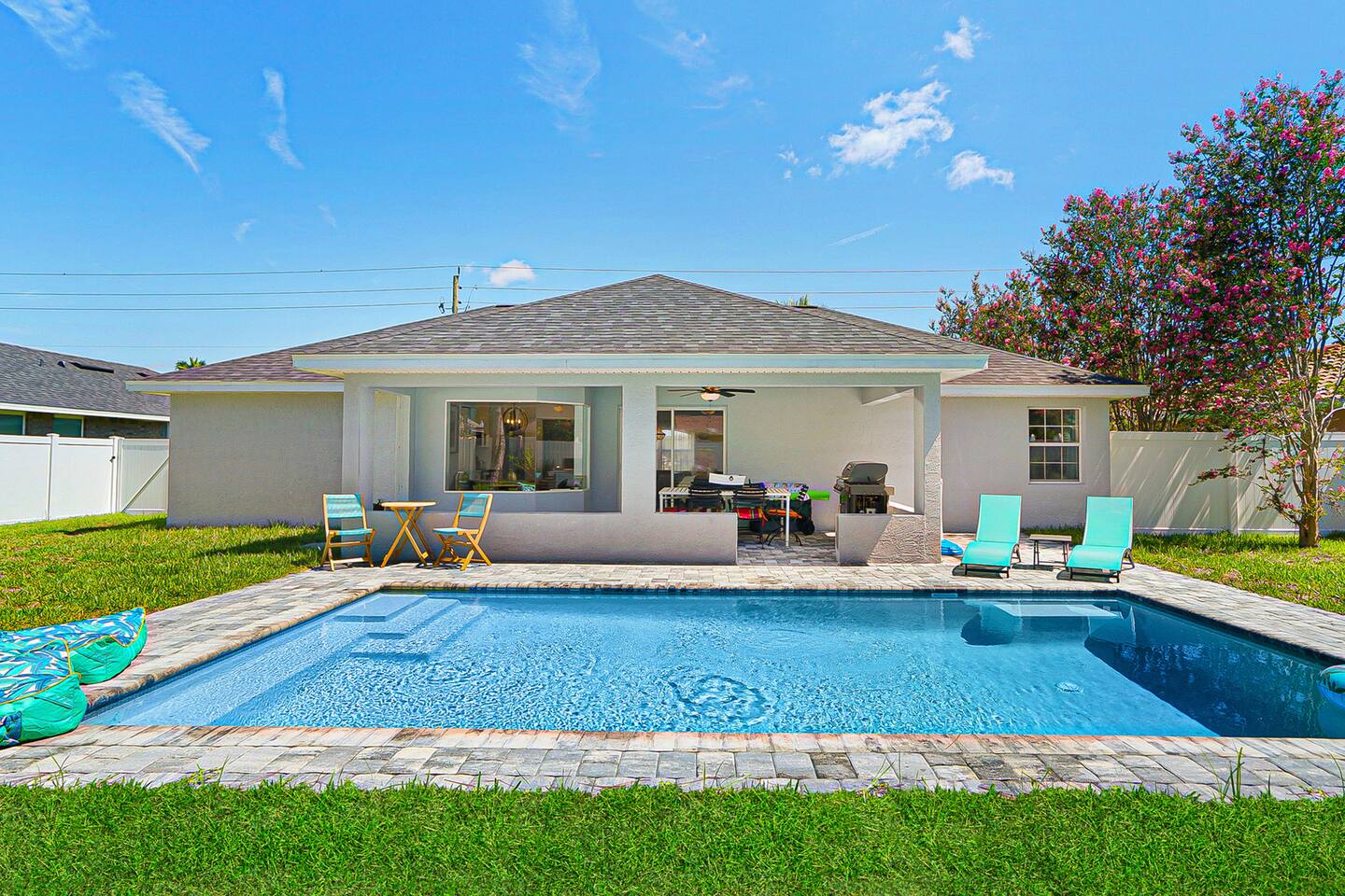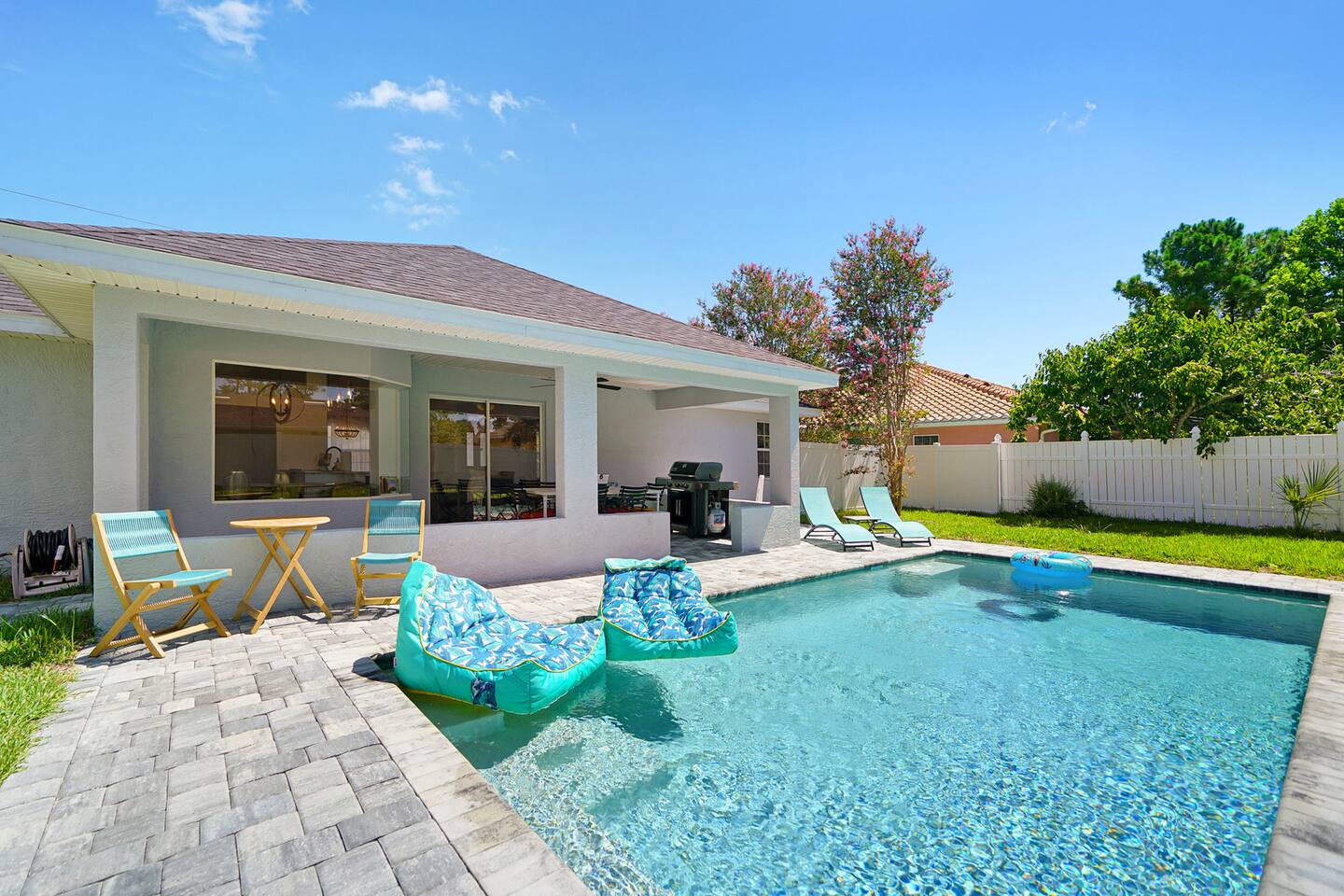 NEW!!! Luxury Coastal Retreat Sleeps 12, with Salt Water new Pool, hottub Fire-pit, Huge Fun Yard, Close to Beach Golf Welcome to Serene Coastal Retreat the ultimate luxury getaway in Palm Coast Florida This newly renovated haven, is designed to offer unparalleled privacy, comfort & style accommodating up to 12 guests Perfect for family reunions, group vacations or a tranquil escape, this home combines modern elegance with thoughtful amenities Kick back and relax in this calm stylish space