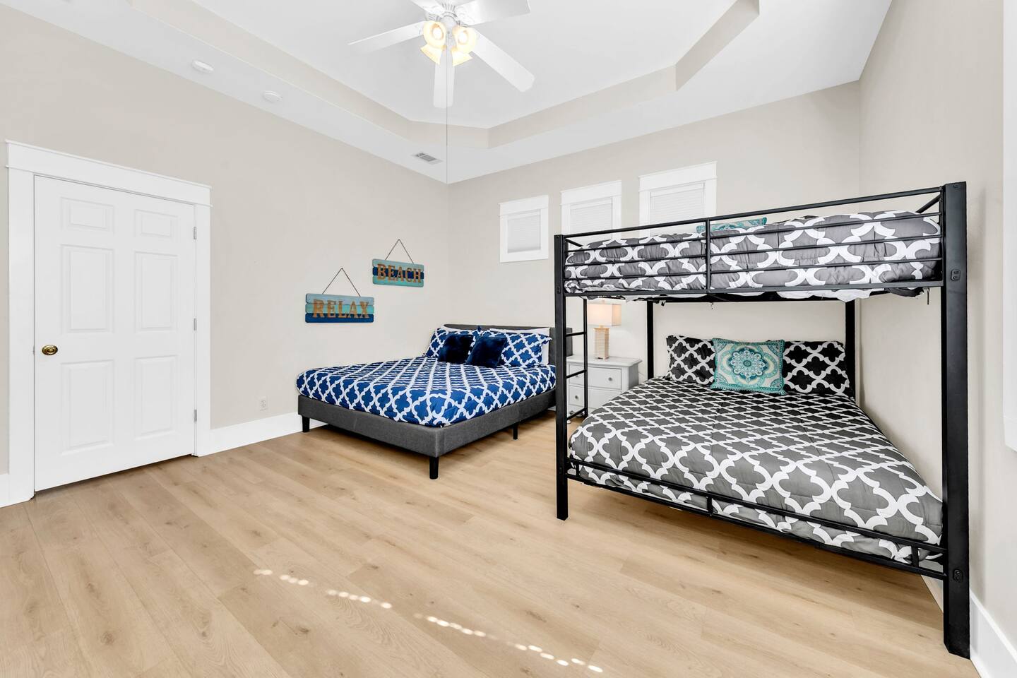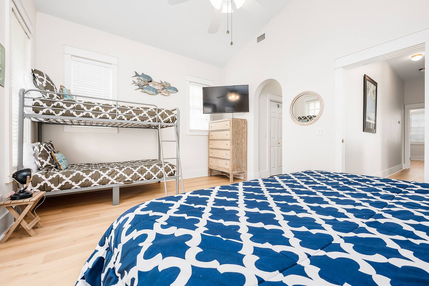 It's time to book your next getaway! Beautiful vacation home sleeps up to 13, 3 Huge Master suites & 3.5 baths, Smart TCL tv in every room Fast WIFI 2 Private Beach accesses 2 min walk! House offers all that you need for a perfect vacation, fits 2 families, 3 couples, a group of friends. There is plenty of space in and around the house for everyone to chill: porch, patio, fenced yard w grill & fire-pit, cool playroom w office space. Walk 5 Steps to heated community pool (winter holidays)
