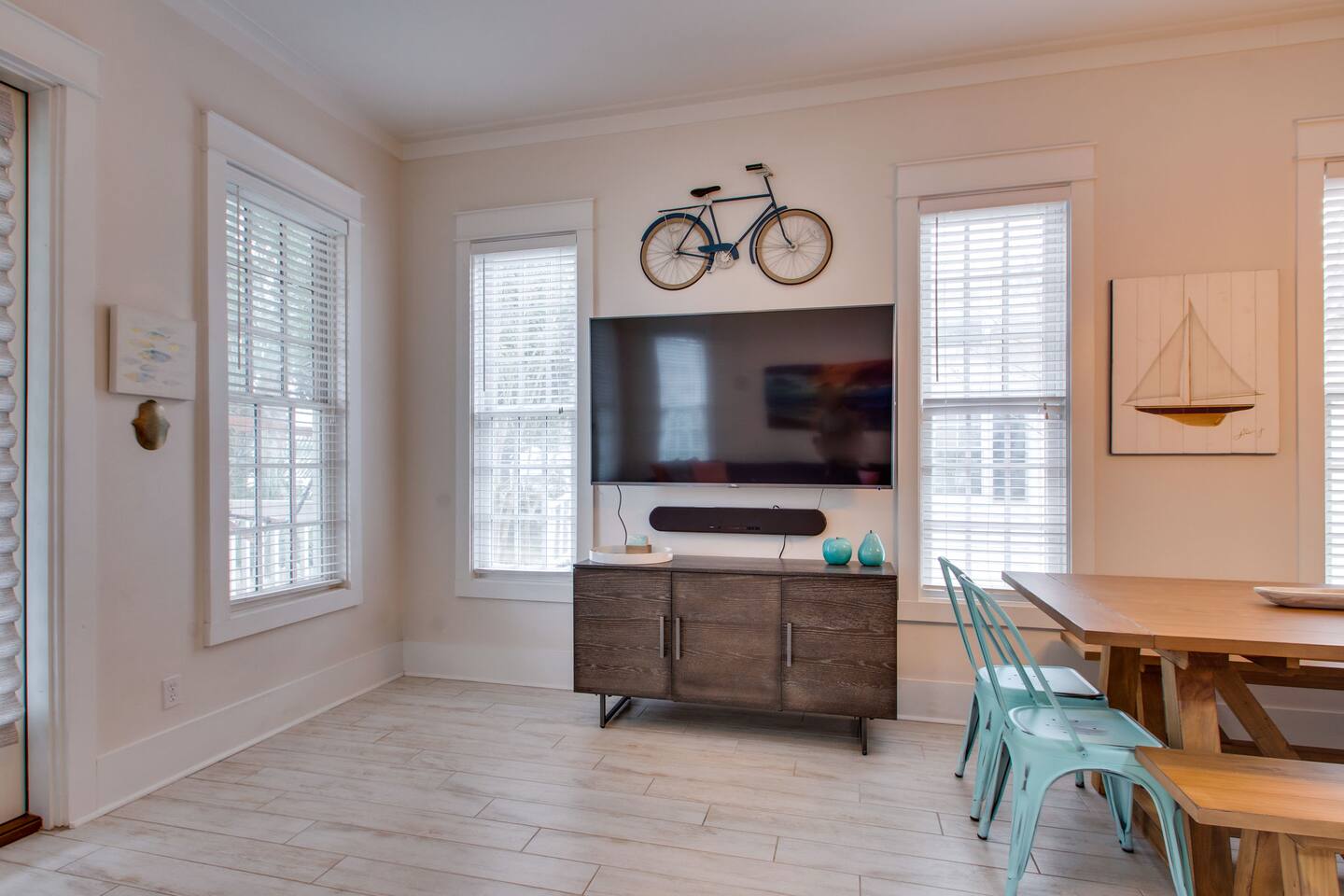This Gorgeous Beach House located on 67 Sarasota Street, Destin FL, has been renovated in 2021 and became a short term rental and guests are loving it! Bring your loved ones, pack some clothes and food and the rest is already here. The location of the house at 67 Sarasota st. is perfect 365 days of the year, only short 2 minutes walk to beautiful white sand private beaches and 5 steps to Community pool (heated during Winter holidays). As you enter the house, the open space living-dining area welcomes you with a 65" TV and free streaming accounts for HULU and Netflix. Our stylish comfy sectional sofa is waiting for you, to watch your favorite series. The chef's kitchen is well equipped with everything you need for cooking/baking with your guests and the counter has 5 bar stools for a quick breakfast, before you head to the beach. Powder and Laundry rooms are on main floor and one of the three Huge Master suites as well, perfect for older family members. High ceilings throughout the house and so many windows gives you a sense of openness and tons of light during all seasons. All 3 Master Ensuite are super spacious, they all have double vanity, two bathrooms has Jacuzzi tub and a shower. Fully fenced yard is great for your pet (we welcome only well behaved dogs with an additional fee) and the highlight for the kids and teens is our new cool playroom/media/office space with SONY Playstation and games. Occupancy and Bedrooms: Up to 13 people (12 adults) Master Bedroom Suite on Main floor: King bed Queen over Queen beds Room can sleep up to 4 people. Ensuite bathroom, with double vanity and a regular tub 55" TV Master Bedroom Suite on Second Floor: King Bed Queen over Queen bed Room can sleep up to 4 people Ensuite Bathroom, double vanity, Jacuzzi tub and a shower. 55"TV Master Bedroom Suite on Third Floor: King bed Twin bunk over Twin Room can sleep up to 4 people. Ensuite Bathroom, double vanity, Jacuzzi tub and a shower. 55"TV Outside: From the 1st Master Bedroom, You can step outside to the covered patio and deck, with comfy sitting area, a new Weber grill, fire pit, and a fully fenced back yard. From the back yard, you can step out through the white small gate, walk 5 steps to reach our Community pool (HOA is in charge of heating and is during Spring /Winter Holidays). Separate from the house, you will find our cool new play room/office space with 65" TV, Playstation 4 with 2 remotes and games, comfy sofas and office space. Upstairs, from the 3rd Master suite, there's another porch with a small sitting area overlooking Sarasota street. We offer a cart with folding chairs that you can take with you to the beach and an outdoor shower, on the right side of the house, to wash yourself from the sand before heading back home. 5 cars can easily park on our driveway and inside the front yard. Please find below some basic instructions and important info that we ask you to follow and agree upon, when you choose our beach home. We put our hearts and souls in our Beach homes and ask that you treat it the same way. 1. NO SMOKING OF ANY KIND IN AND AROUND THE HOUSE OR GARAGE. 2. NO PARTIES OR EVENTS, at any time only 13 people are allowed at the house. 3. PARKING for up to 4 cars on our driveway only and inside our white fence. No parking is allowed on the street, on neighboring property across or on grassy areas. City is pretty strict and give fines. 4. Up to 2 WELL BEHAVED DOGS are welcome with our pre-approval and a separate non refundable pet fee of 200$ per dog, per stay that will be collected via square or Venm o. Dogs are not allowed on sofas, beds or furnitures. Please clean after your dog and keep our backyard ready for the next guests. Please note that dogs are not allowed on the Destin or Miramar beaches. Few counties allows local residents with dog-on-beach permits to walk their leashed dogs on the beach, Walton County property owners or permanent residents must obtain a permit from the county clerk each year to walk dogs on the beach. However, there are a few dog parks and you are welcome to walk with your dog in our neighborhood and along the promenade. 5. YOUNG GUESTS: If most of the adults in your group are under 25, a separate 750$ refundable damage deposit is required, after securing your reservation, via square. This money will be used to cover for any damage or disturbance during or after your stay (Noise, Parking violations, Repairs, Missing items). This amount will be released up to 7 business days after check out. 6. It is forbidden to temper with any of the fire alarms in the house, playroom. Evidence of smoking or tempering with the smoke and fire alarms will result in an immediate cancellation of your reservation, without any refunds. 7. Sleeping on bunk beds is at your own risk. 8. All water activity is at your own risk and responsibility.